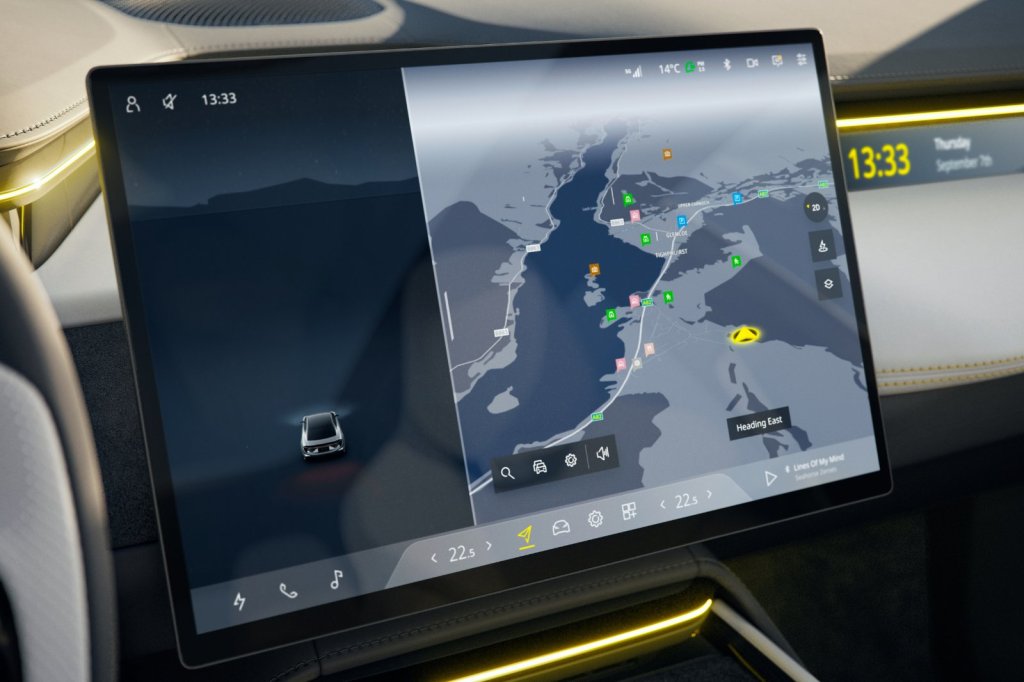 Inside the cabin is similar to that of the bigger Eletre, which means you are submerged in a variety of plush, high-end quality materials, and in addition, you have the choice of picking a green-positive interior material to flood your cabin. The center console is dominated by a massive touch-screen display, which, oddly, is the norm nowadays in any car. The driver’s display is, however, odd, as it is just a little rectangular screen accompanied by an Augmented Reality heads-up display that can be utilized to project such things as directions from your maps.