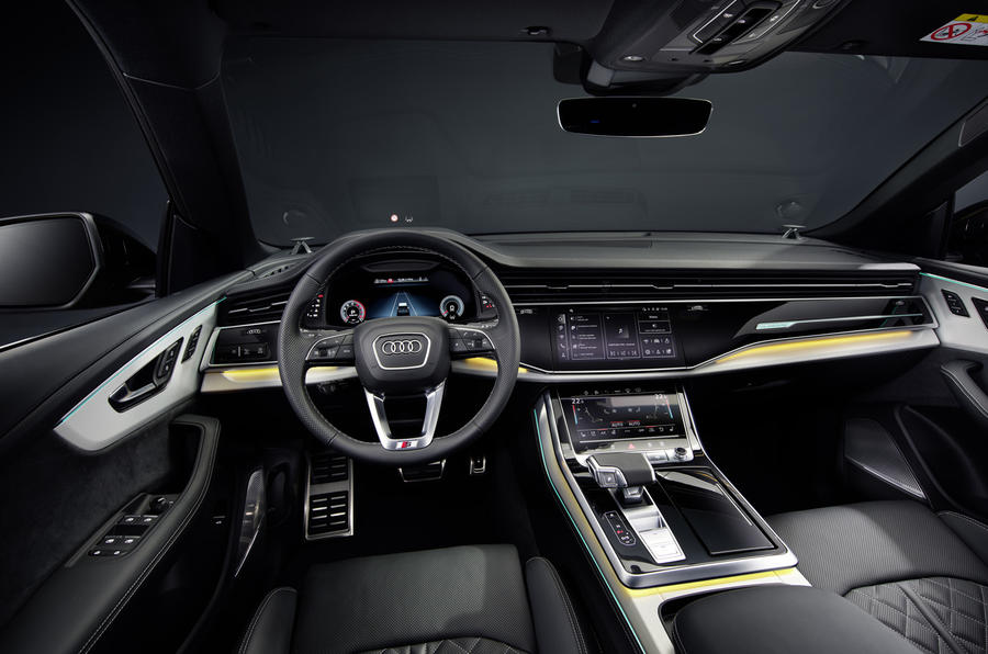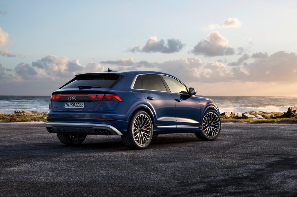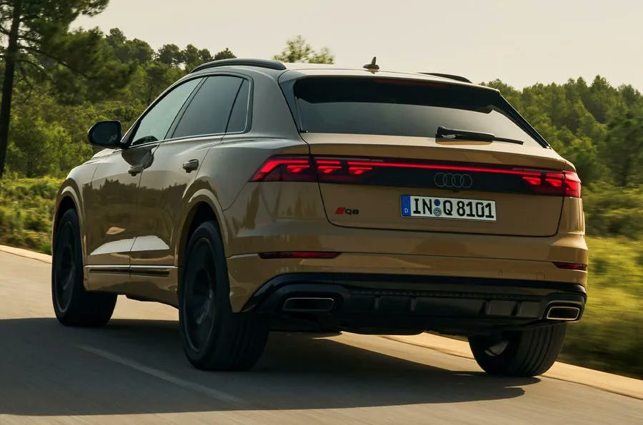 The side profile again remains largely the same as the Q8 retains its sporty silhouette and muscular proportions, just gaining a new set of alloy wheel designs that begin at 21 inches and go up to 23 inches.